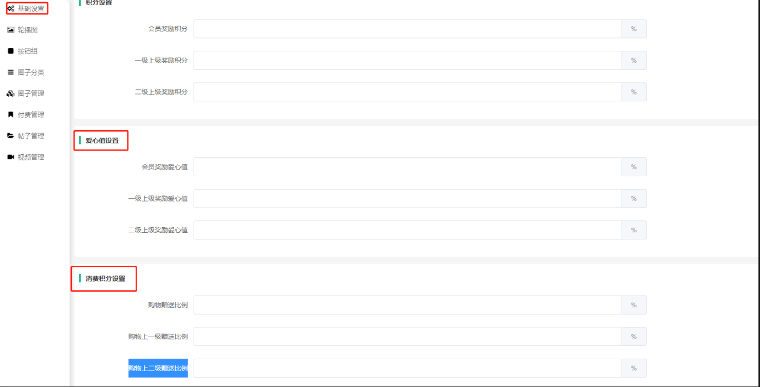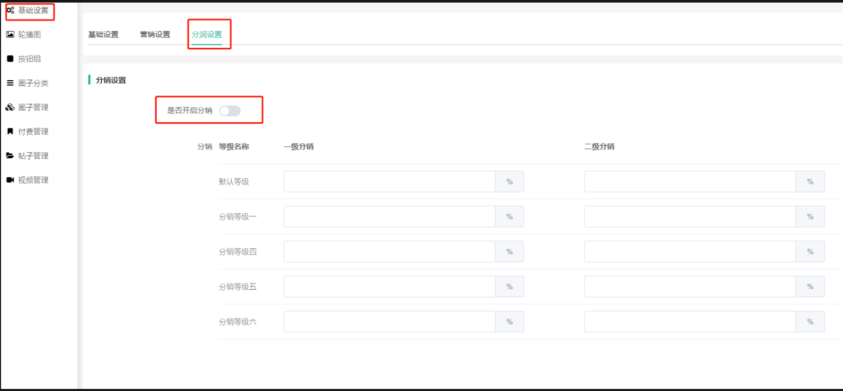举例说明:付费入圈平台扣点:20%,开启分销,分销等级一:10%,分销等级二:20%