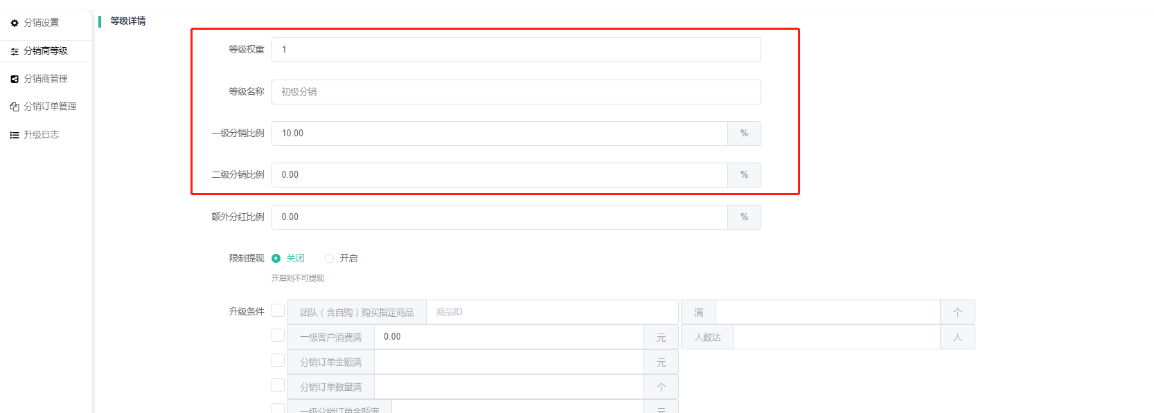 二、分销等级升级条件意思说明