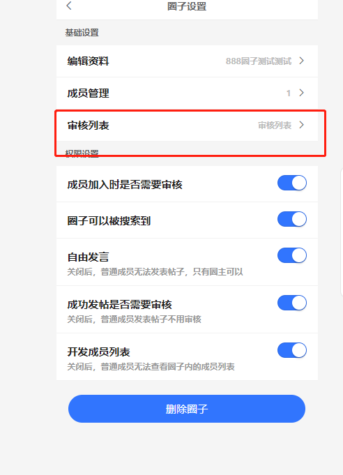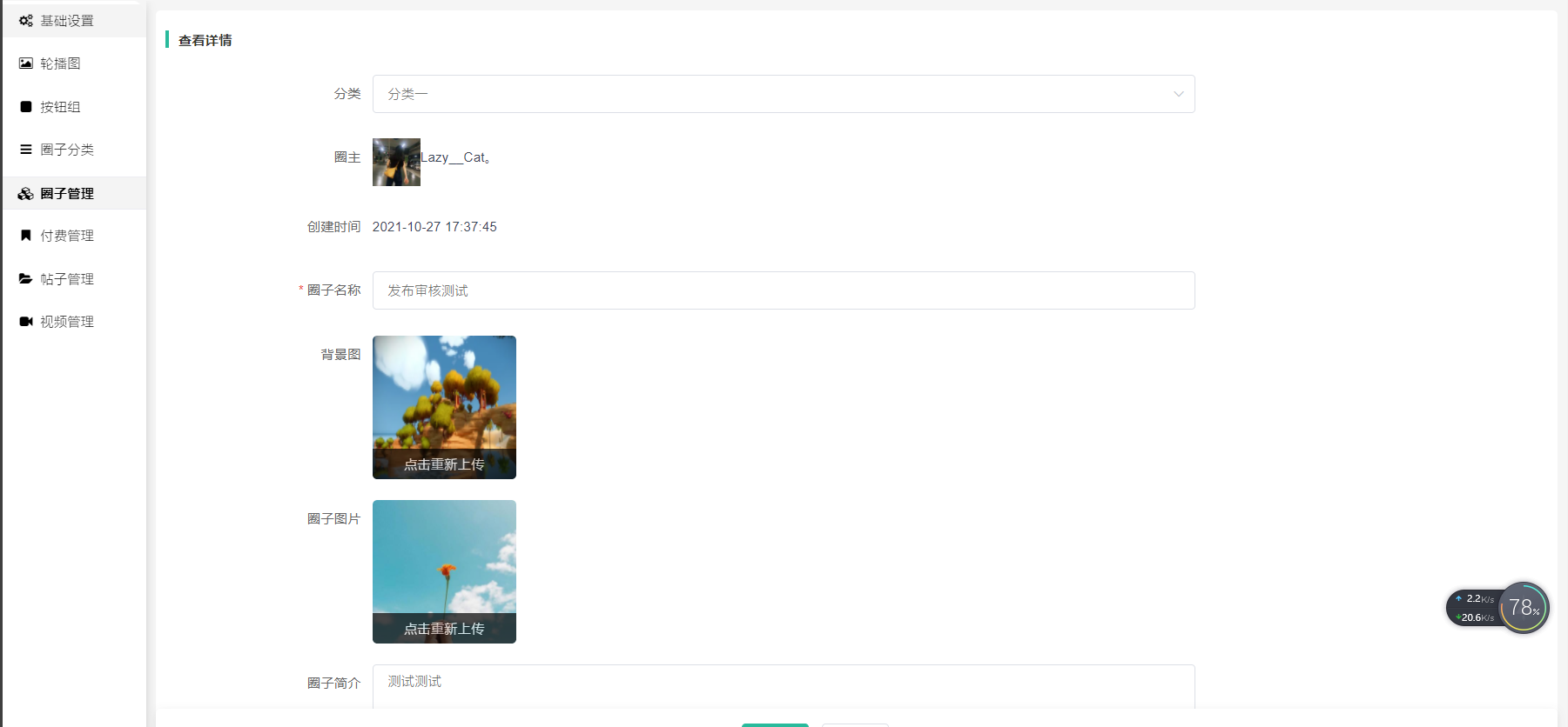 ①.开启需要审核,会员前端进行创建圈子时候,在后台进行审核通过/驳回
